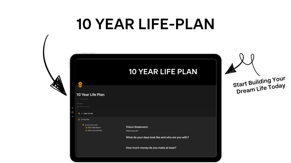 - 10 Year Life-Planner - Vision boards, journal prompts, and visualization exercises to dream big and plan bigger